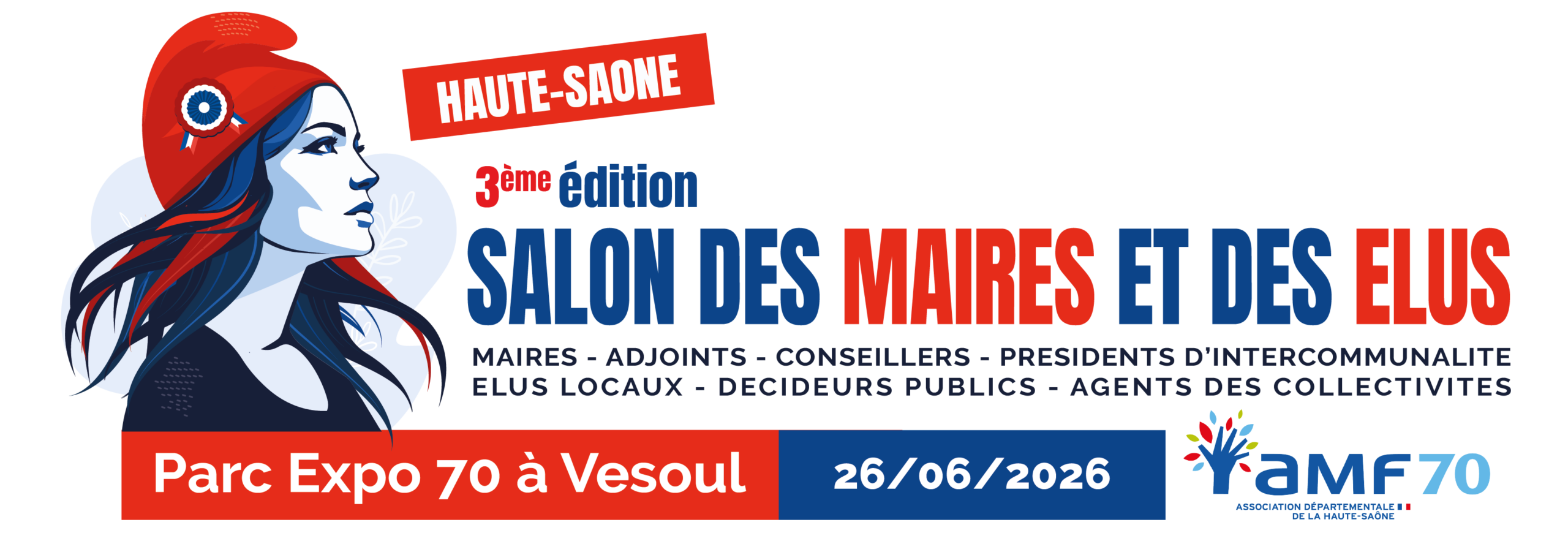 L’Association départementale de la Haute-Saône (AMF70) organise le Salon des Maires et des Élus de la Haute-Saône, le vendredi 26 juin 2026, au Parc Expo 70 à Vesoul.